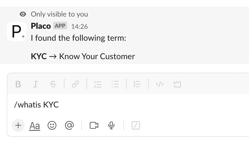 Integrated within Slack, Placo allows your team to instantly access definitions for any company-specific jargon or acronyms.